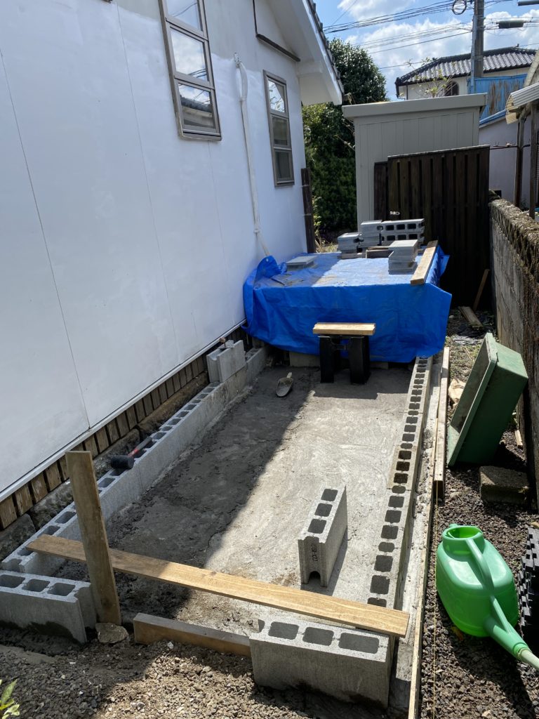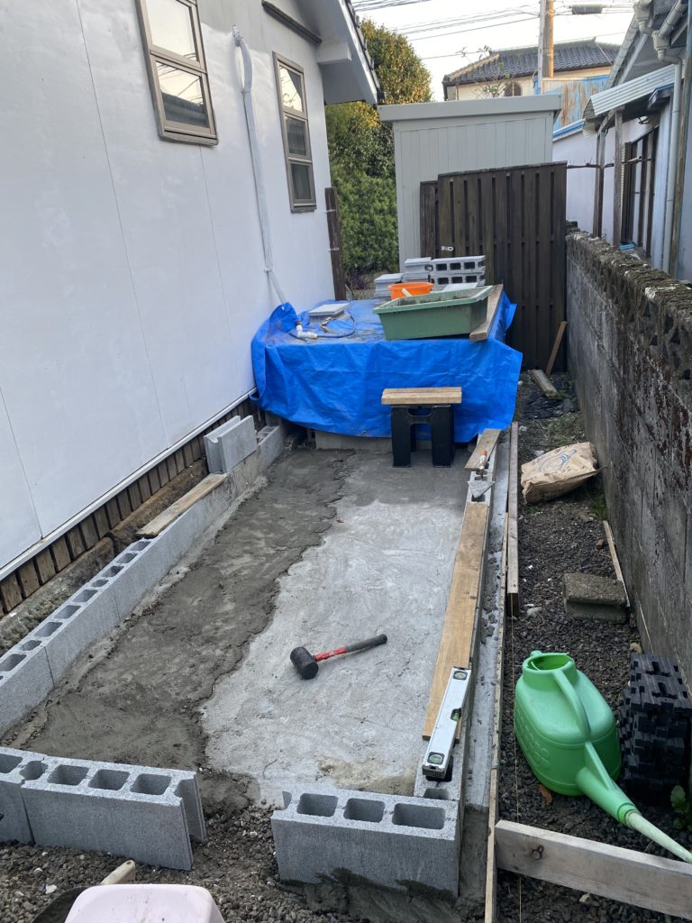 水平器を使いブロック積み